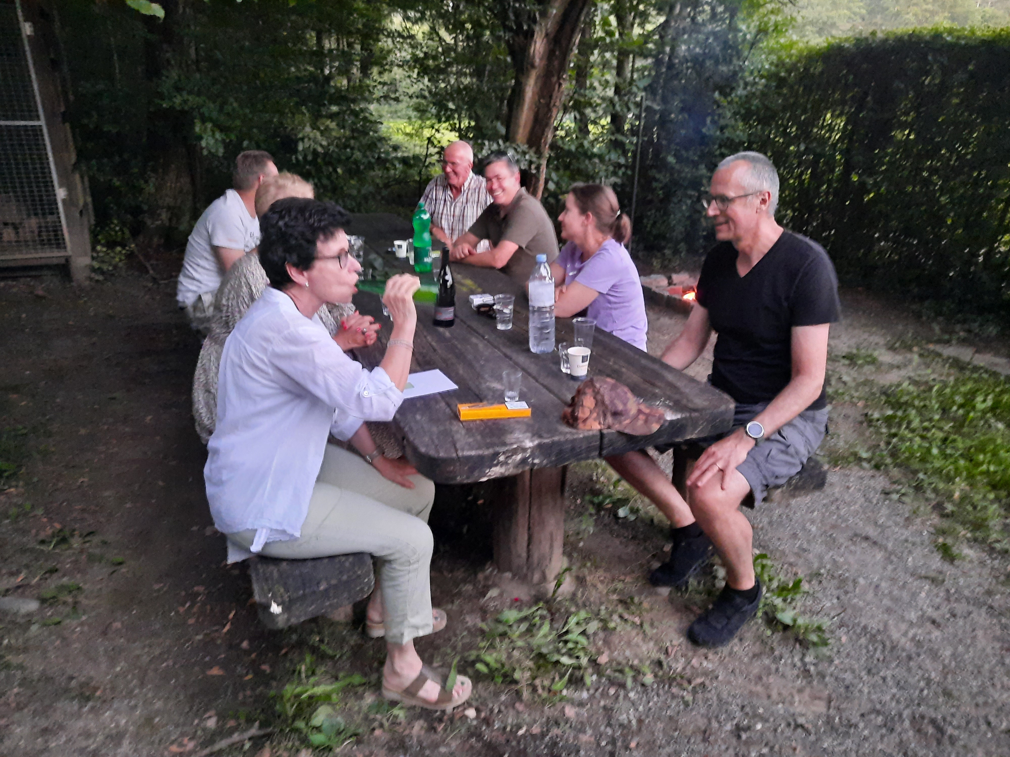 Endlich, endlich hat der VJBH wieder einen Vereinsanlass durchführen können. Nach 16 Monaten Corona bedingten Absagen fand am vergangenen Samstag wieder einmal ein VJBH Grillplausch statt. Der Vorstand hatte für diesen Anlass den bisher heissesten Tag des feuchten Sommers 2021 ausgesucht: 30 und mehr Grad empfingen die 15 VJBHler mit und ohne Partner/in in der Jagdhütte Hagelacher in Oberhasli, die vom Ehrenmitglied Marco Derungs zur Verfügung gestellt wurde. Kein Wunder flossen zuerst eher Mineralwasser und Bier durch die durstigen Kehlen als Wein und Kaffee. Steaks und Würste vom Feuer, Kartoffel- und Mischsalat sowie Kuchen sorgten dafür, dass niemand hungrig blieb. Diskutiert wurde viel, auch über die bevorstehende Bündner Jagd, Jägerlatein wurde gedroschen und Corona Erfahrungen ausgetauscht. Und weil es nach dem Einnachten bei Kerzenlicht so richtig angenehm und gemütlich wurde, dauerte es bis in tiefste Nacht, bis die Letzten den Ort wieder verliessen. Dies nicht ohne für den vom VJBH offerierten Plausch einen freiwilligen Unkostenbeitrag zu entrichten. Danke!