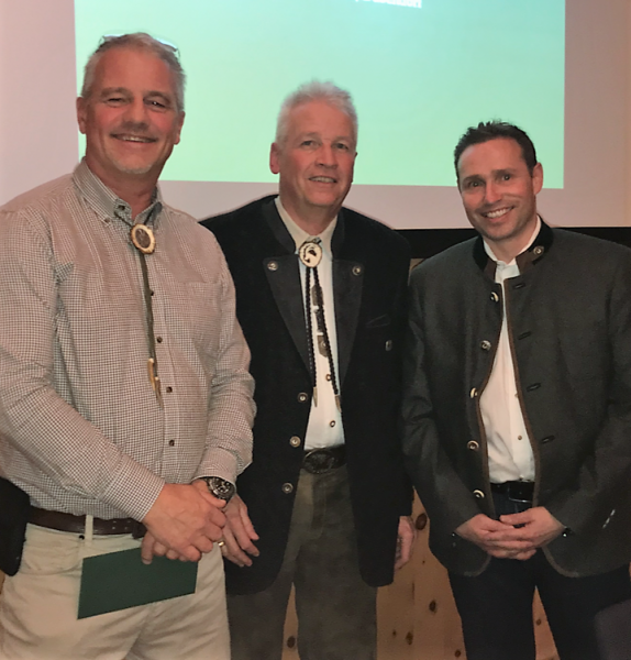 Als Nachfolger für den nach sechs Jahren aus dem Vorstand zurückgetretenen Vizepräsidenten Jürg Signer (links) wurde Andrea Huder aus Wollerau (rechts) einstimmig und mit Applaus gewählt. Präsident Walter Vaterlaus (Mitte), Kassier Rinaldo Poltera, Beisitzer Stefan Mathiuet und Beisitzerin Manu Fleischmann wurden für eine weitere zweijährige Amtsperiode wiedergewählt.